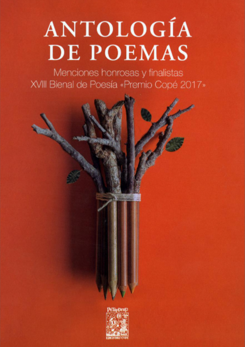 La Antología de poemas de las menciones honrosas y finalistas de la XVIII Bienal de Poesía del «Premio Copé 2017» reúne, respectivamente, textos de Cristhian Briceño (La única cosa que es probable que rompas es todo) y George Clarke (Principios de metafísica rupestre), y de Florentino Díaz (Transformaciones del centro), Adrián Alberto (Algún sitio más allá de la muerte), Alfonso Sánchez Mendoza (Bitácora urbana), Juan Amaro Villacorta (Épica de los comunes y celebración de la poesía), Nelson Ricardo Ramírez Vásquez-Caicedo (Identikit de quimeras), Dimas Arrieta (La palabra de la huaca adentro), Luis Grover González Gallardo (La piel en la distancia), José Gabriel Valdivia Álvarez (Vía crisis) y Emily Sachs (Verbum: un viaje imaginario).