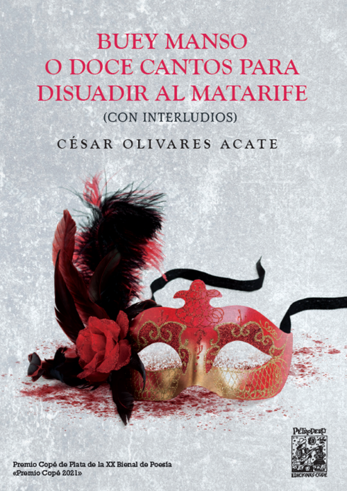 Según el Jurado Calificador del concurso la obra “Buey manso o doce cantos para disuadir al matarife” es un libro conformado por doce cantos de amor y muerte con imágenes potentes que representan la peruanidad sangrante, dolida y punzante en una versión holística como un ojo de pez. Fotografía la pobreza y el desastre de ir muriendo entre la máquina económica del país. Es una lectura de la muerte desde el cuerpo con una ironía visceral andina. Usando estampas entre la frontera y la desesperación pero que logra, gracias a un humor característico del Perú, evitar el exceso de dramatismo.