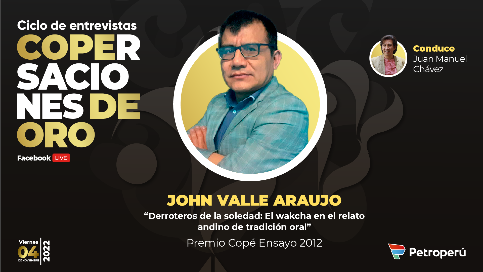 John Valle Araujo (Pomacochas, distrito de la provincia de Bongará en el departamento de Amazonas, 1976). Estudió Literatura en la Universidad Nacional Mayor de San Marcos. En esta casa de estudios, pudo conocer a muchos migrantes como y a hijos de migrantes que procedían de lugares condenados a la violencia despiadada. La universidad había sido pacificada un poco antes. Fue en las clases de Literatura Quechua del profesor Manuel Larrú que descubrió su interés por la tradición oral andina, de la que estaba tejida gran parte de su memoria literaria. En un trabajo monográfico de ese curso habría de gestarse la categoría del wakcha que propuso en su tesis de licenciatura, trabajo que luego sería premiado con el Copé de Ensayo en 2012. Por ello, John agradece al profesor Larrú por sus recomendaciones, sobre todo para clasificar la categoría tomando en cuenta la totalidad del universo andina y no limitándola solamente al mundo terrenal.