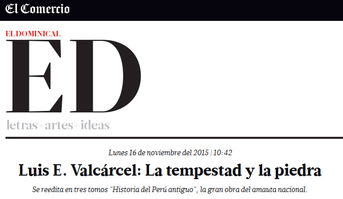 Transcripción del artículo aparecido en El Dominical del diario El Comercio sobre la reciente publicación de Ediciones Copé de Petroperú “Historia del Perú antiguo” de Luis E. Valcárcel.