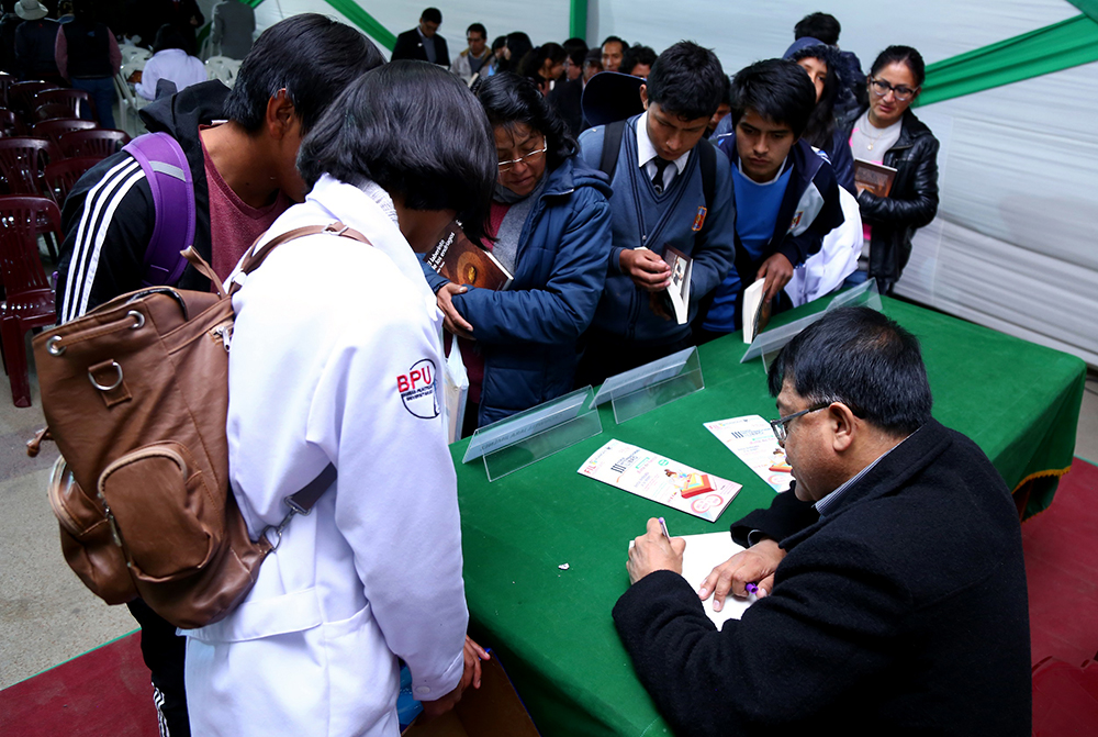 Finalizada la presentación, se entregaron ejemplares de los libros ganadores a los asistentes, quienes a su vez formaron largas colas para que estas ediciones sean autografiadas por los propios autores.