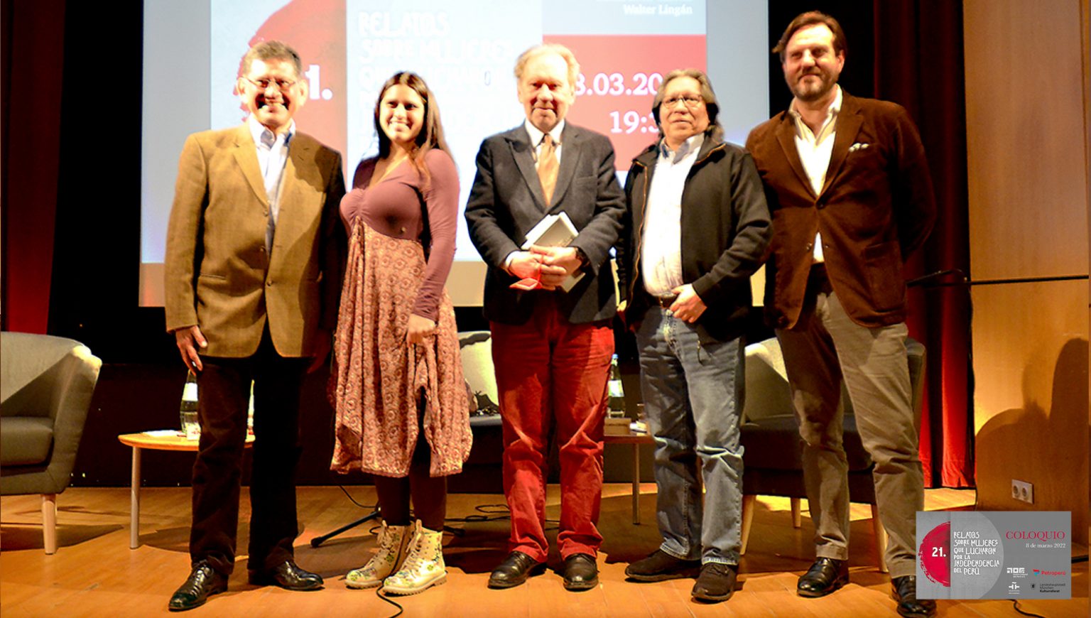 Asimismo, ese mismo día se realizó la presentación oficial en la ciudad alemana del libro “21. Relatos sobre mujeres que lucharon por la independencia del Perú (edición: Colección Bicentenario Petroperú, 2021), promovido por el Centro Cultural del Perú e. V. en Múnich y el Instituto Cervantes Múnich. En la actividad presencial y transmitido vía las redes sociales de las entidades participantes se presentó una charla entre Rosalí León – Ciliotta, autora colaboradora en el libro y el autor peruano Walter Lingán. Ellos analizaron y debatieron sobre el papel de la mujer peruana en la lucha por la independencia y la conmemoración de su contribución en un momento crucial del Perú en el que se asentó la base para el futuro del país. La moderación asume el Prof. em. Dr. Dr. Michael Rössner.