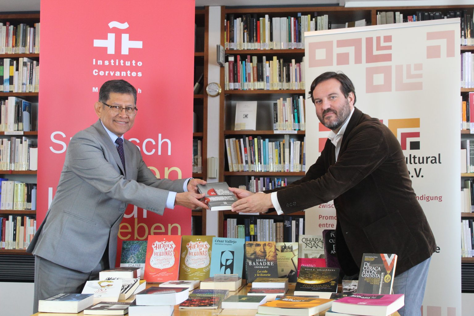 Con el apoyo del Ministerio de Relaciones Exteriores del Perú, la coordinación del Centro Cultural del Perú e. V. en Múnich y Petróleos del Perú se realizó en primer lugar la entrega de una colección de libros Copé para la biblioteca del Instituto Cervantes en Múnich. En la cita se hicieron presente los representantes de las instituciones involucradas y agradecieron el gesto de la empresa peruana en seguir promoviendo lo mejor de la investigación y literatura peruana. Obras de autores reconocidos como Jorge Basadre, Victoria Santa Cruz, César Vallejo, José Antonio del Busto, Luis G. Lumbreras, entre otros formarán parte de la colección de la biblioteca del Instituto Cervantes en Múnich, en beneficio de los lectores de la biblioteca, estudiantes e investigadores hispanohablantes en la capital del estado de Baviera.