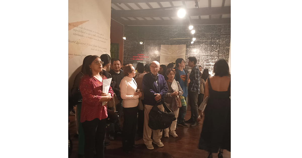 Durante la inauguración se realizó una visita mediada y además, estuvieron presentes los Susurradores poéticos, quienes leyeron algunos poemas de César Vallejo al oído.