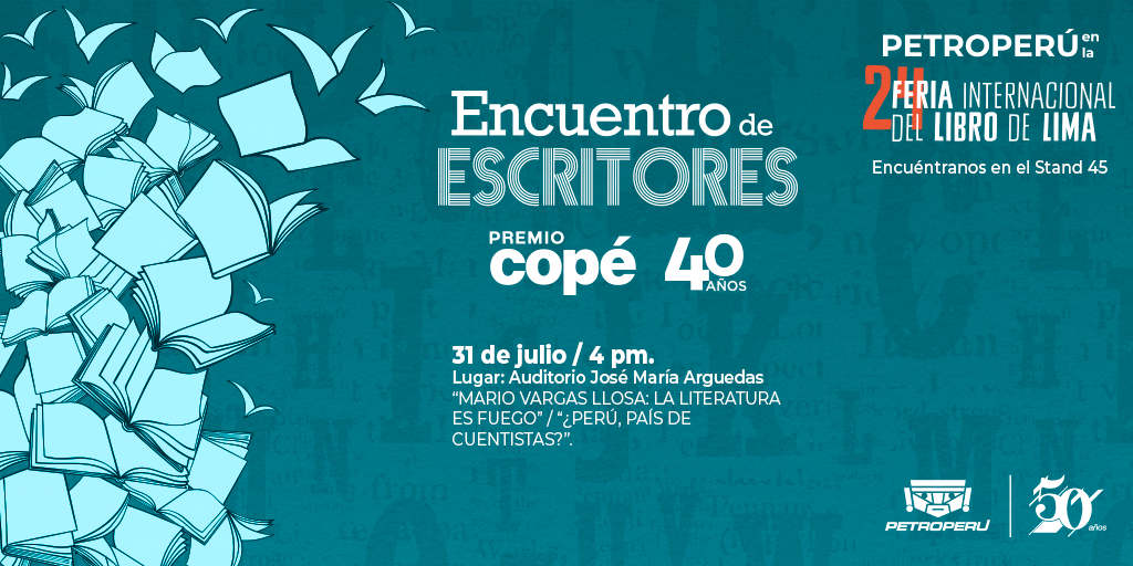 El “Encuentro Copé” se desarrollará los días 30 y 31 de julio en el auditorio José María Arguedas de 4 pm a 6 pm. Cuatro mesas que llevan por título “Andinos vs. Criollos: a 14 años de una polémica literaria”, “Grupos literarios en el Perú”, “Mario Vargas Llosa: La literatura es fuego” y “Perú ¿país de cuentistas?”.