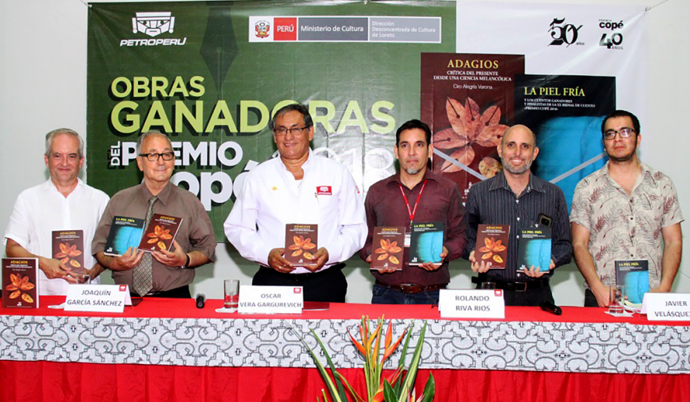 “Adagios. Crítica del presente desde una ciencia melancólica”, obra ganadora del Copé de Oro categoría ensayo, de Ciro Alegría Varona y la obra “La piel fría y los cuentos ganadores y finalistas de la XX Bienal de Cuento”, donde el loretano Luiz Reátegui, resultó ganador del Copé de Bronce con la obra “La Casa abuela”, fueron presentadas al auditorio que quedó complacido con la magistral presentación de Joaquín García y Javier Velásquez, quienes con sus comentarios motivadores, avivaron las ganas de leer los libros, recientemente publicados bajo el sello Ediciones Copé.