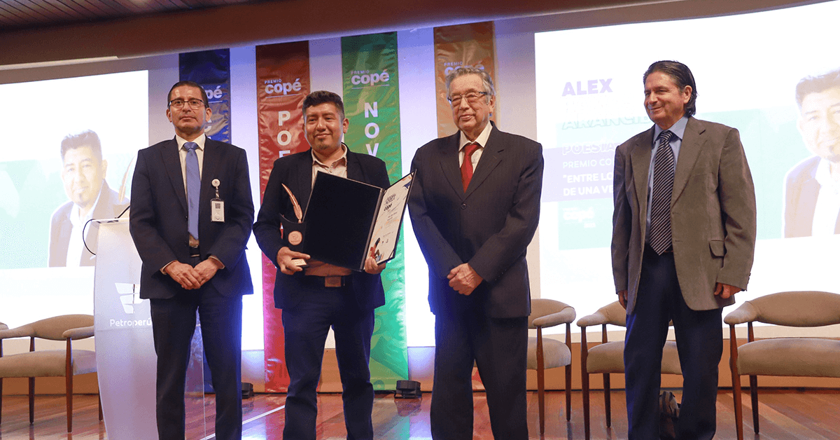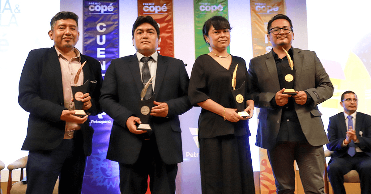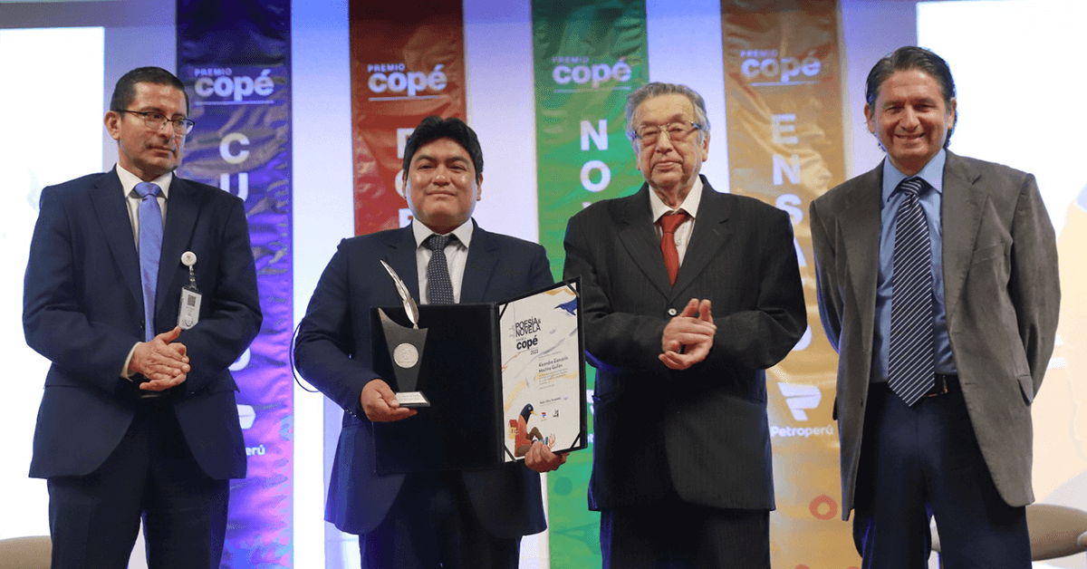 En la categoría Poesía además se seleccionó a los poemarios “Río dormido sobre escombros de memoria” y “Entre los límites de una vela” con el Premio Copé de Plata y Bronce, respectivamente, correspondiente a los escritores e investigadores Alejandro Giancarlo Mautino Guillen y Alex Alan Ramos Arancibia.