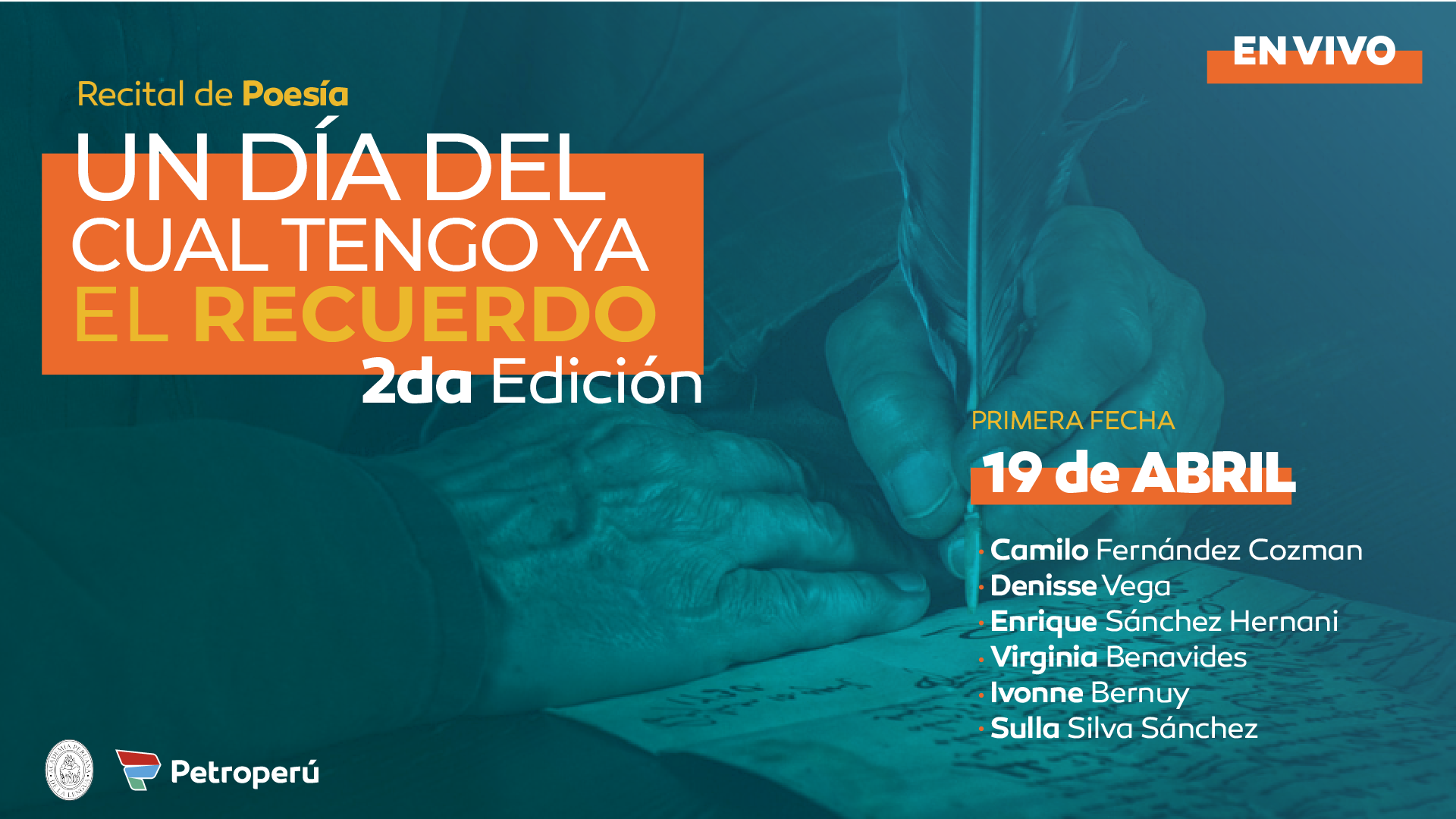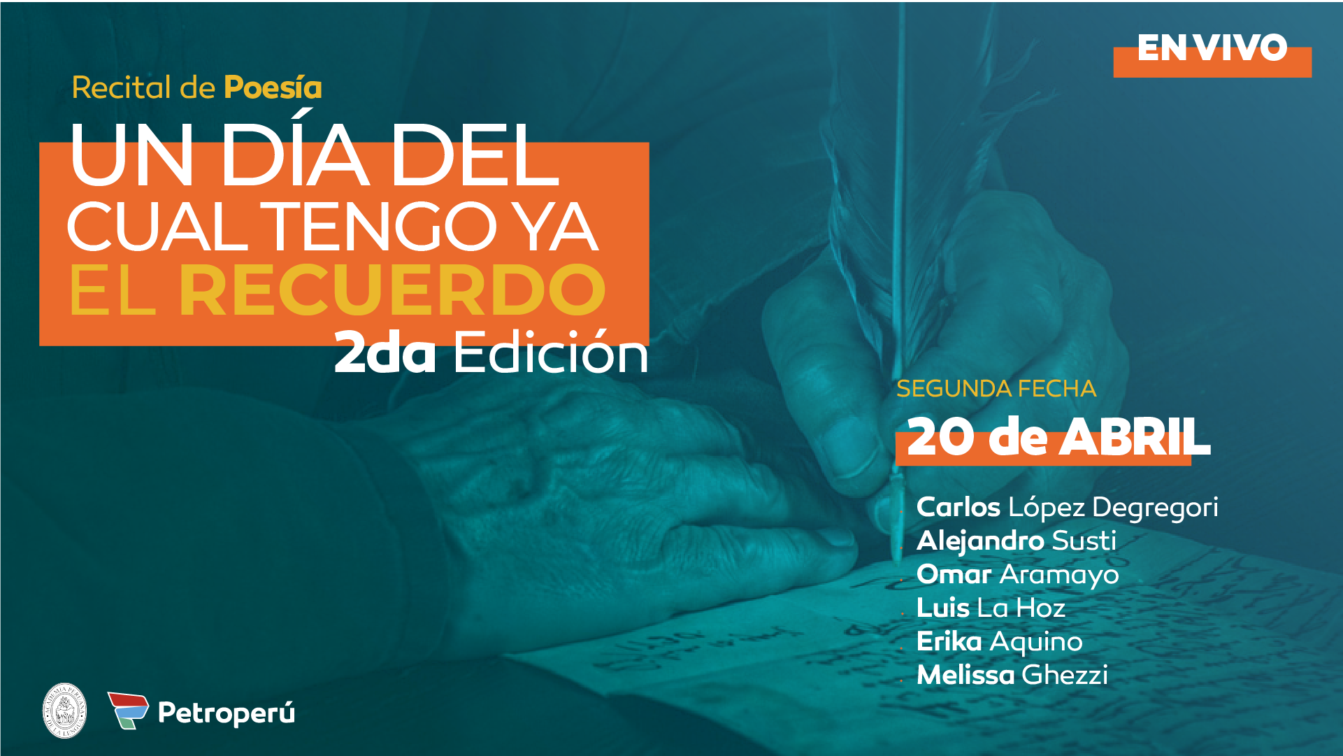 Creado en 2021, el recital de poesía “Un día del cual tengo ya el recuerdo” es un proyecto creado por Petróleos del Perú y la Academia Peruana de la Lengua para visibilizar la obra poética peruana y sus autoras y autores de todo el país, así como incentivar la lectura en general.
