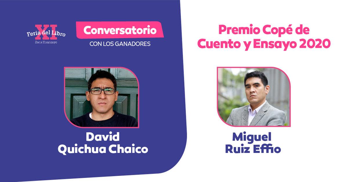 Los conversatorios giran en torno a las obras ganadoras del Copé 2020: el ensayo “De curaca a congresista. Vigencia de una familia indígena en la política nacional” del historiador y docente David Quichua Chaico; y el cuento “El dedo en el disparador” del escritor y editor Miguel Ruiz Effio. Ambas actividades serán transmitidas mediante la plataforma virtual de la feria del libro y por el Facebook live del Centro Cultural Petroperú, de manera gratuita.