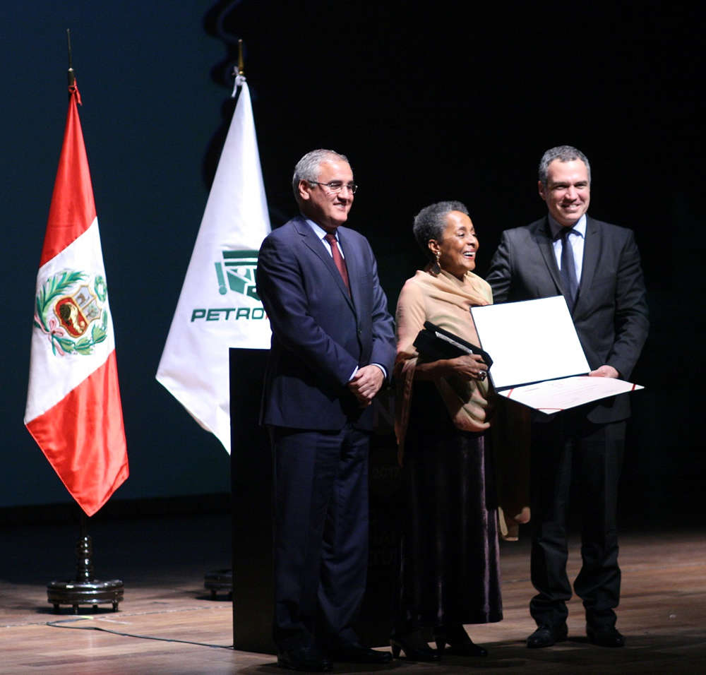 Máximo galardón que concede el Estado fue entregado por el ministro de Cultura, Salvador del Solar, y el presidente de PETROPERÚ, Luis Eduardo García Rosell Anoche, el Gran Teatro Nacional congregó a un importante grupo de invitados, quienes participaron de la ceremonia de reconocimiento a los ganadores del Premio Nacional del Cultura (PNC) 2017, el galardón más importante que realiza el Estado a la gestión y desarrollo cultural de personas e instituciones a favor de la sociedad. Estos importantes galardones fueron entregados por el ministro de Cultura, Salvador del Solar, quién destacó el aporte de PETROPERÚ en auspiciar por sexto año consecutivo estos reconocimientos que resaltan y nos motivan a valorar más nuestra identidad. “La cultura cambia a las personas, transforma a las comunidades y desarrolla a las naciones. Por eso es importante reconocer a quienes han recogido lo que ofrece esta cultura, lo han transformado y nos lo han devuelto para hacernos sentir más cerca de lo que en verdad somos”, comentó. El presidente de PETROPERÚ, Luis Eduardo García Rosell, felicitó a los ganadores quienes representan un punto de referencia para las nuevas generaciones y una fuente permanente de inspiración para todos los que hemos disfrutado de su talento y sido testigo de su gestión en favor de la cultura peruana. “Nuestro apoyo es una muestra del constante trabajo que hemos emprendido para motivar la creación artística y valorar la diversidad de su ejecución, en nuestras zonas de influencia, pero también en las principales ciudades del país”, añadió. En esta edición, la compositora e investigadora de música Susana Baca de la Colina obtuvo el premio en la categoría Trayectoria; por su originalidad y estilo demostrado a lo largo de su extensa carrera. El maestro Óscar Naters Burger ganó el premio Creatividad, por haber llevado otros niveles su ingenio, perspicacia e inspiración en la danza, la actuación, la performance, el video y la iluminación, entre otras disciplinas escénicas. Mientras que el premio Buenas Prácticas Institucionales fue para el Museo de Arte de Lima (MALI), por sus décadas a favor de la protección y promoción de las expresiones culturales, de la defensa y conservación del patrimonio cultural de la nación y del diálogo intercultural. El PNC es un concurso que organiza el Ministerio de Cultura y que PETROPERÚ auspicia por sexto año consecutivo, reafirmando su ineludible compromiso con la promoción cultural el país.
